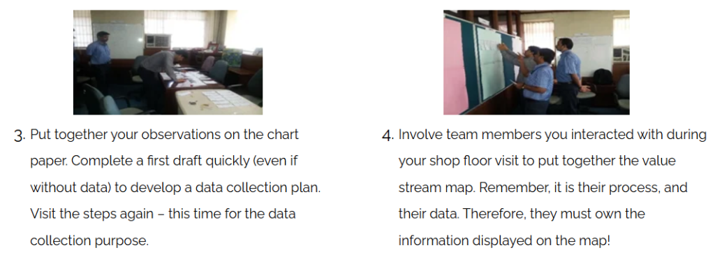 Find below in pictures, how we accomplish value stream activity in a company. Though, our approach to put up a value stream map differs from company to company. Find below one such value stream mapping efforts in pictures with captions.