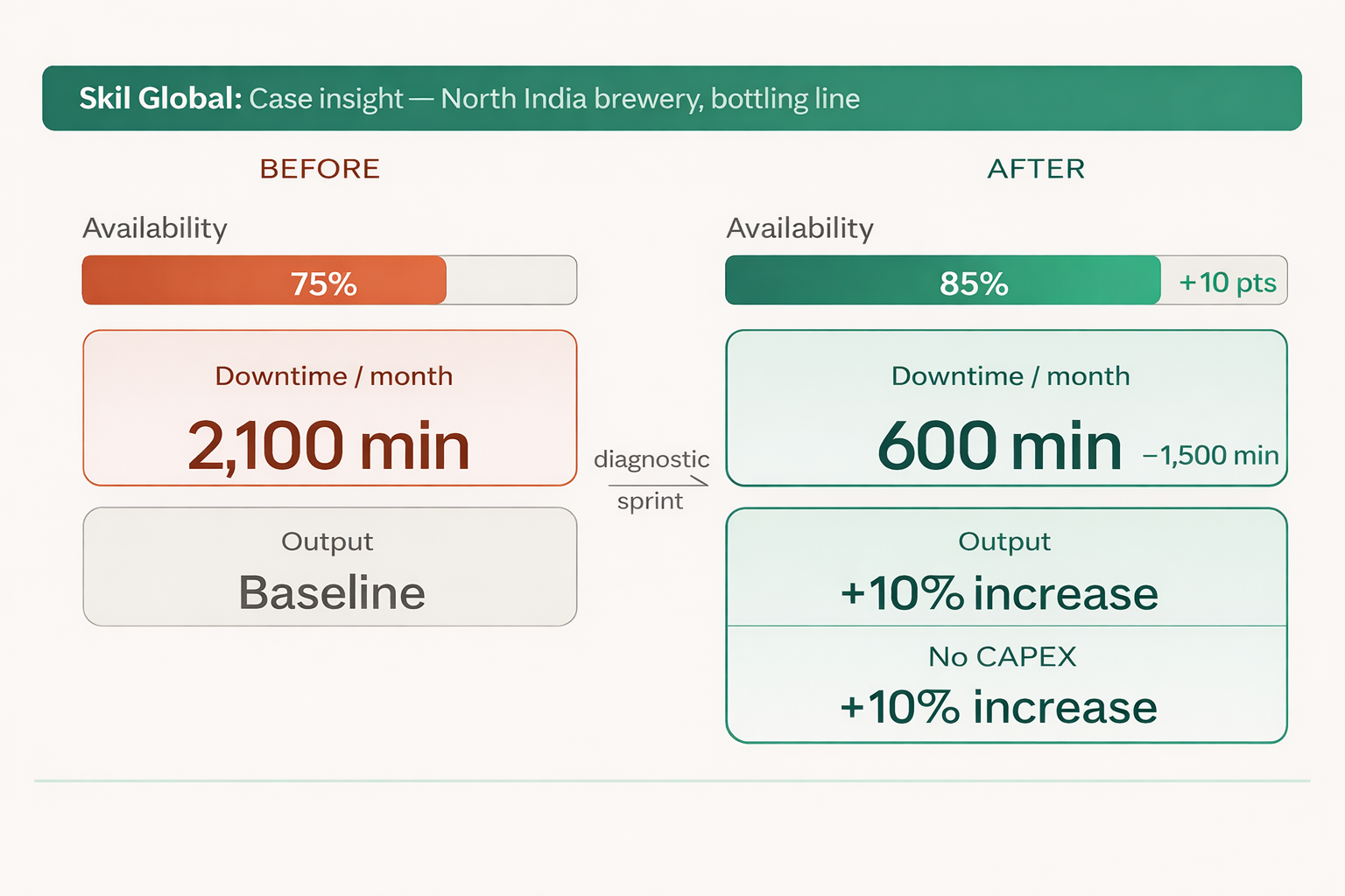 In one North India brewery, a bottling line had been operating at around 75 percent availability.
